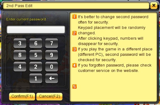 - Added a secondary password system for account security. You can set the password on the character selection screen.